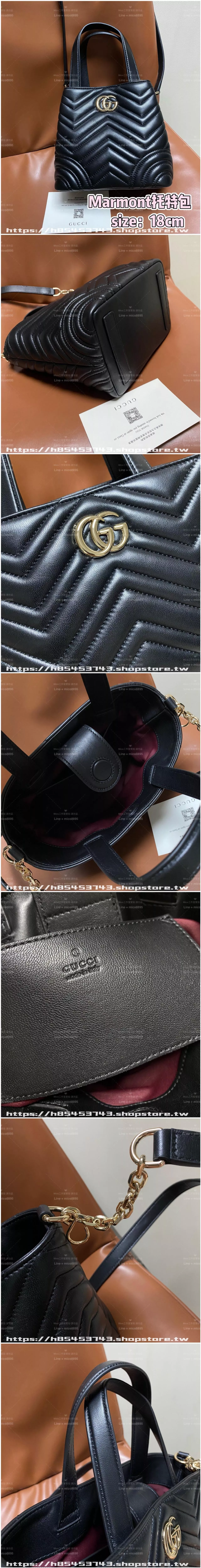 Gucci Marmont 黑色純色牛皮托特包 18cm 小號(847386)