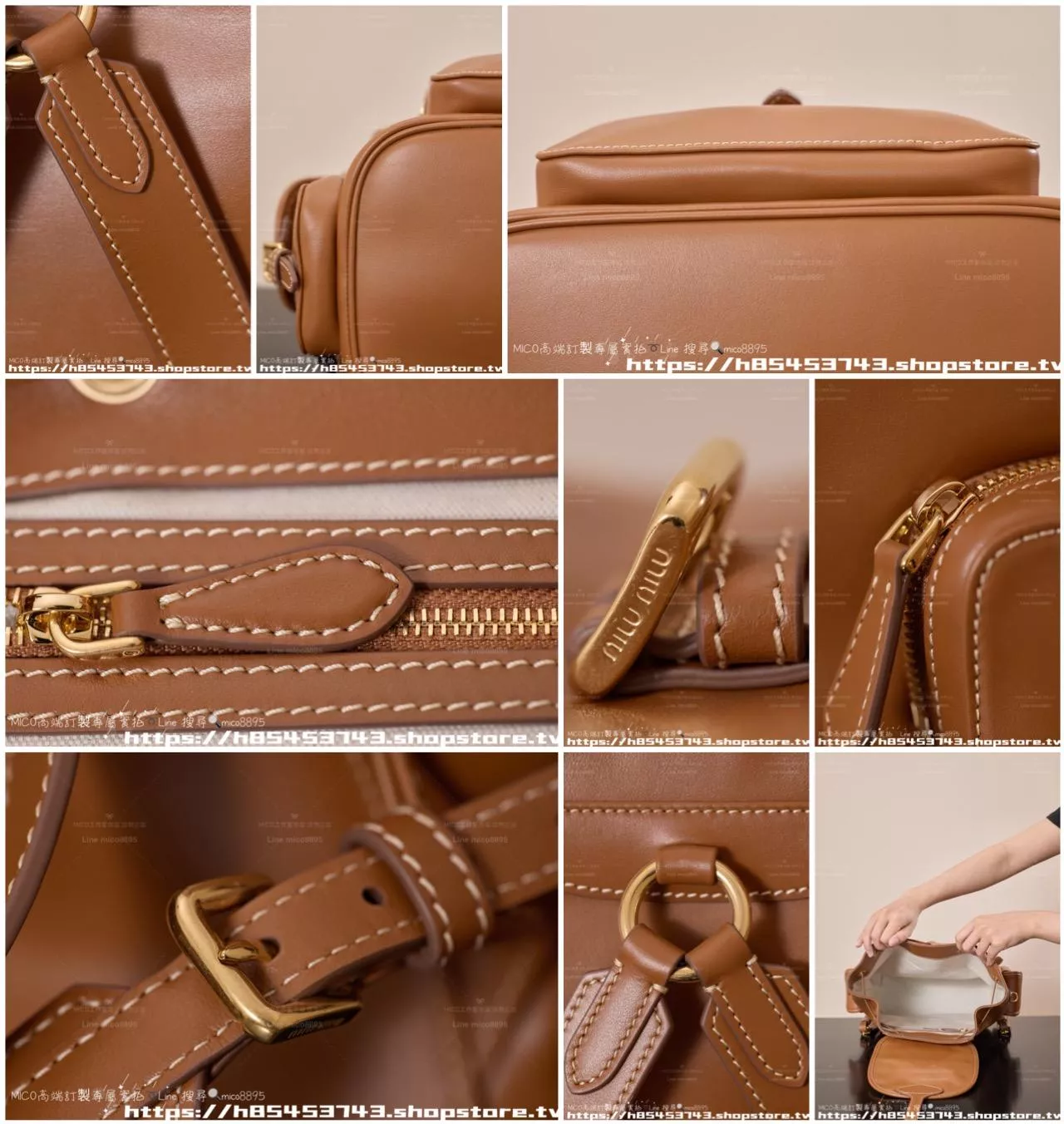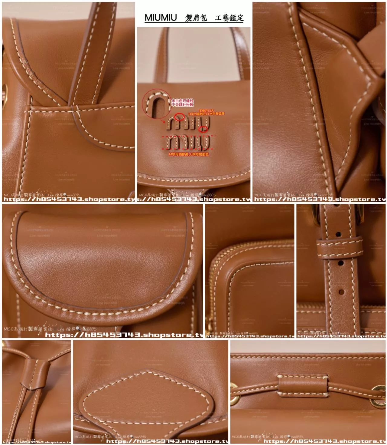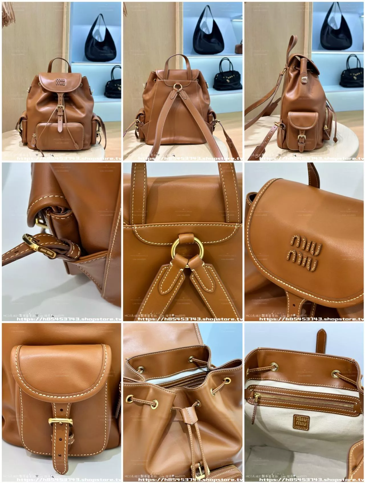 𝐌𝐈𝐔 𝐌𝐈𝐔 牛皮革雙肩包・大號 干邑色|5BZ042|25×29.5×12.5cm