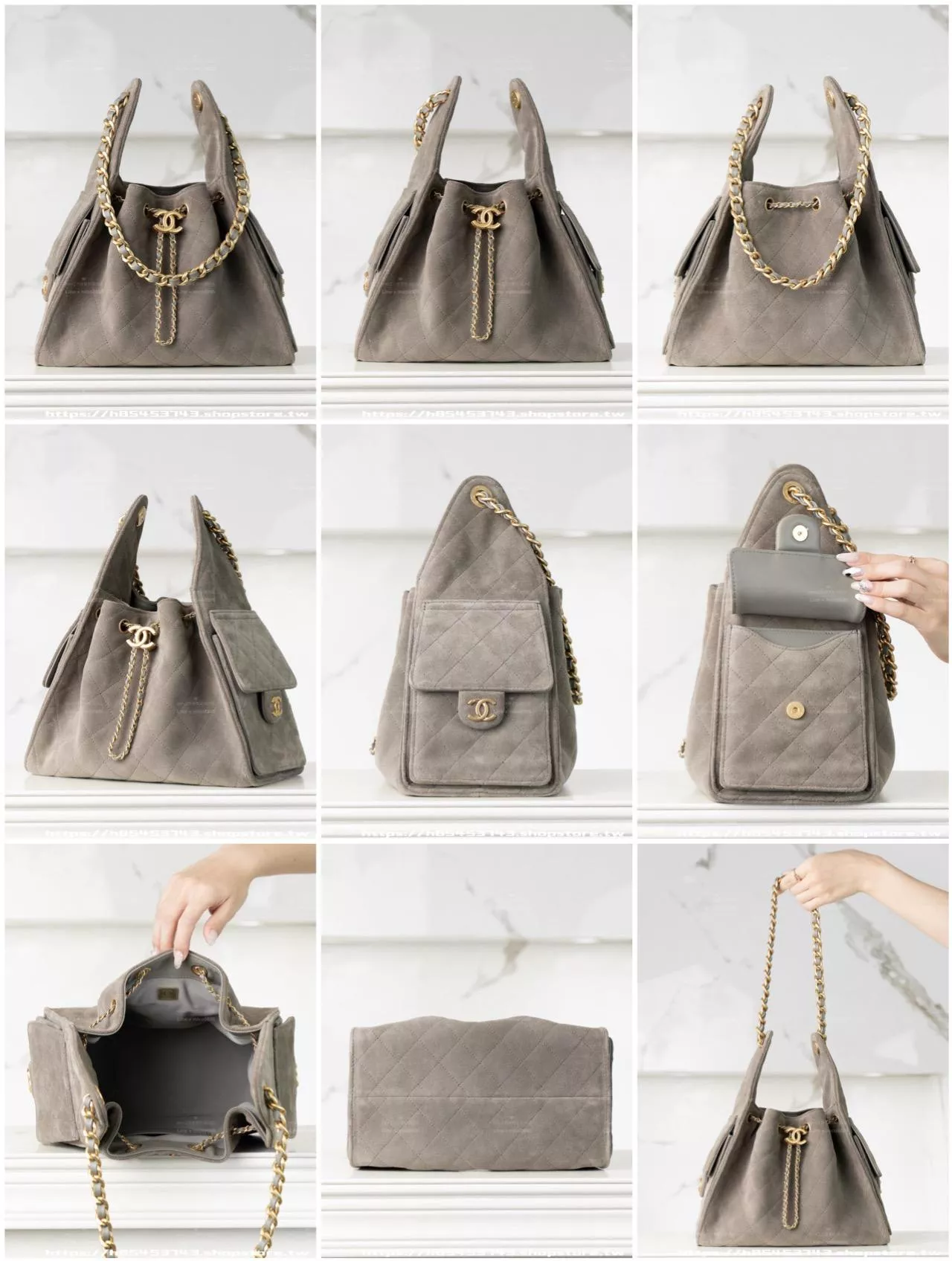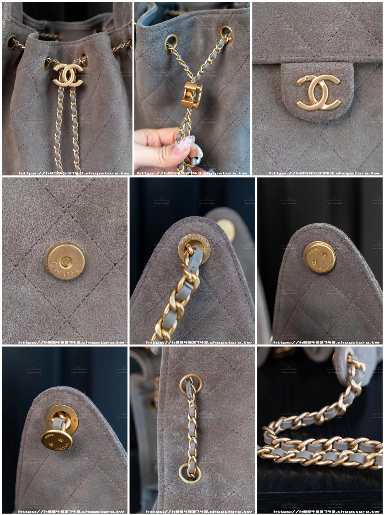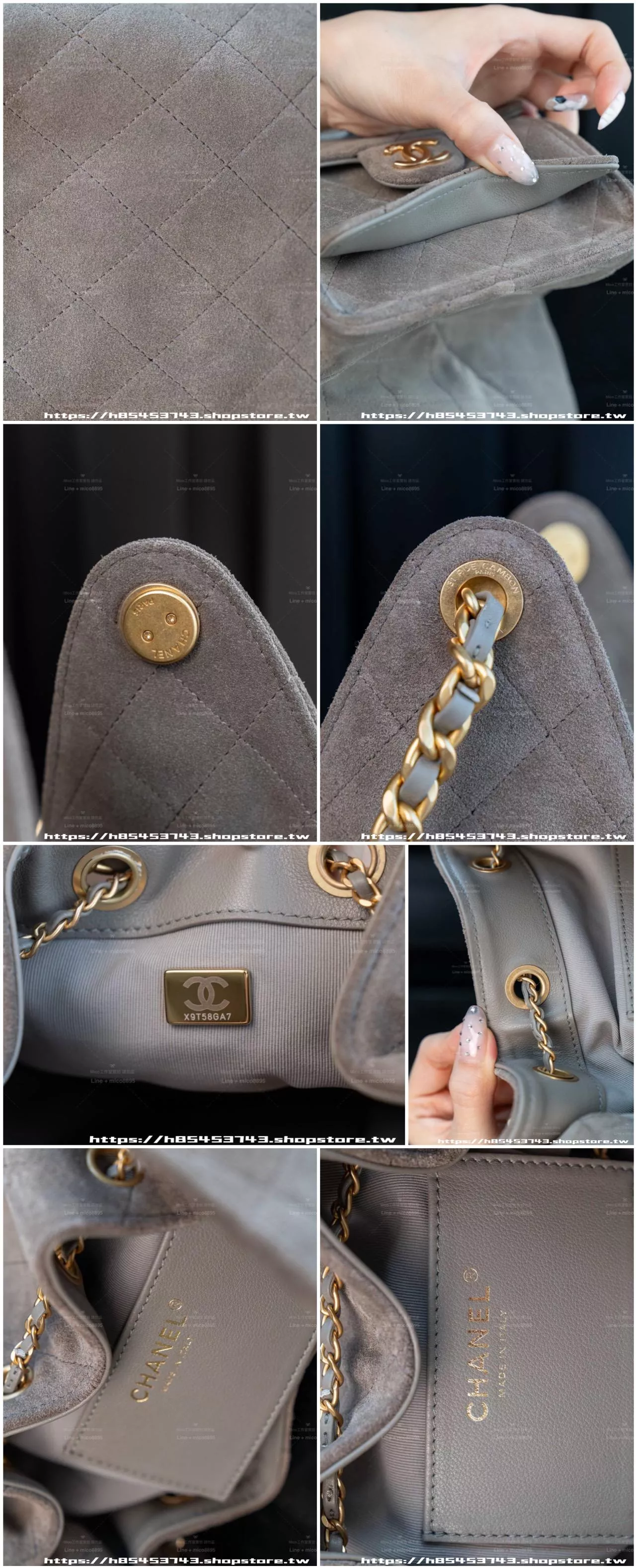 CHANEL 25C 季節款 小號 25Bag 灰色麂皮 hobo 抽繩水桶包 26cm