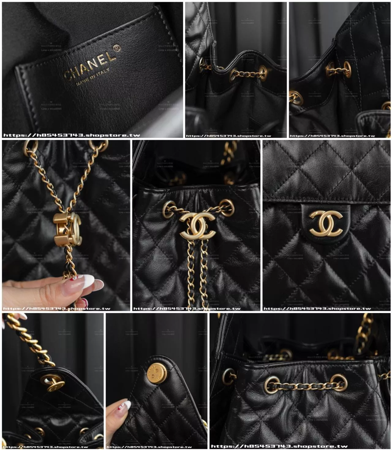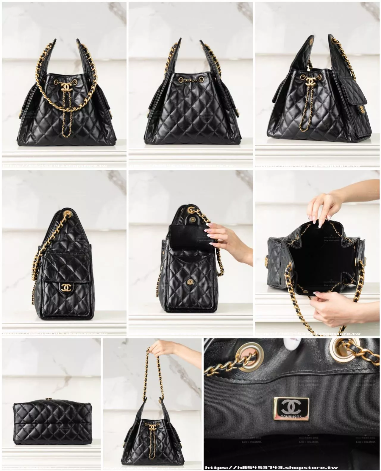 可調節鏈條背帶能在腋下包/水桶包之間自由切換,實用又時髦。