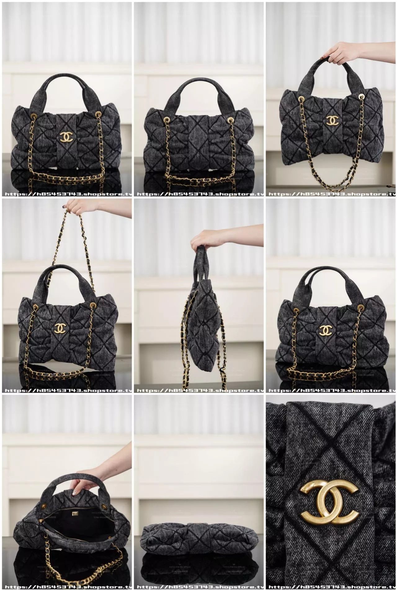 25K 蝴蝶結手袋|黑牛仔 中號 立體蝴蝶結・經典菱格設計