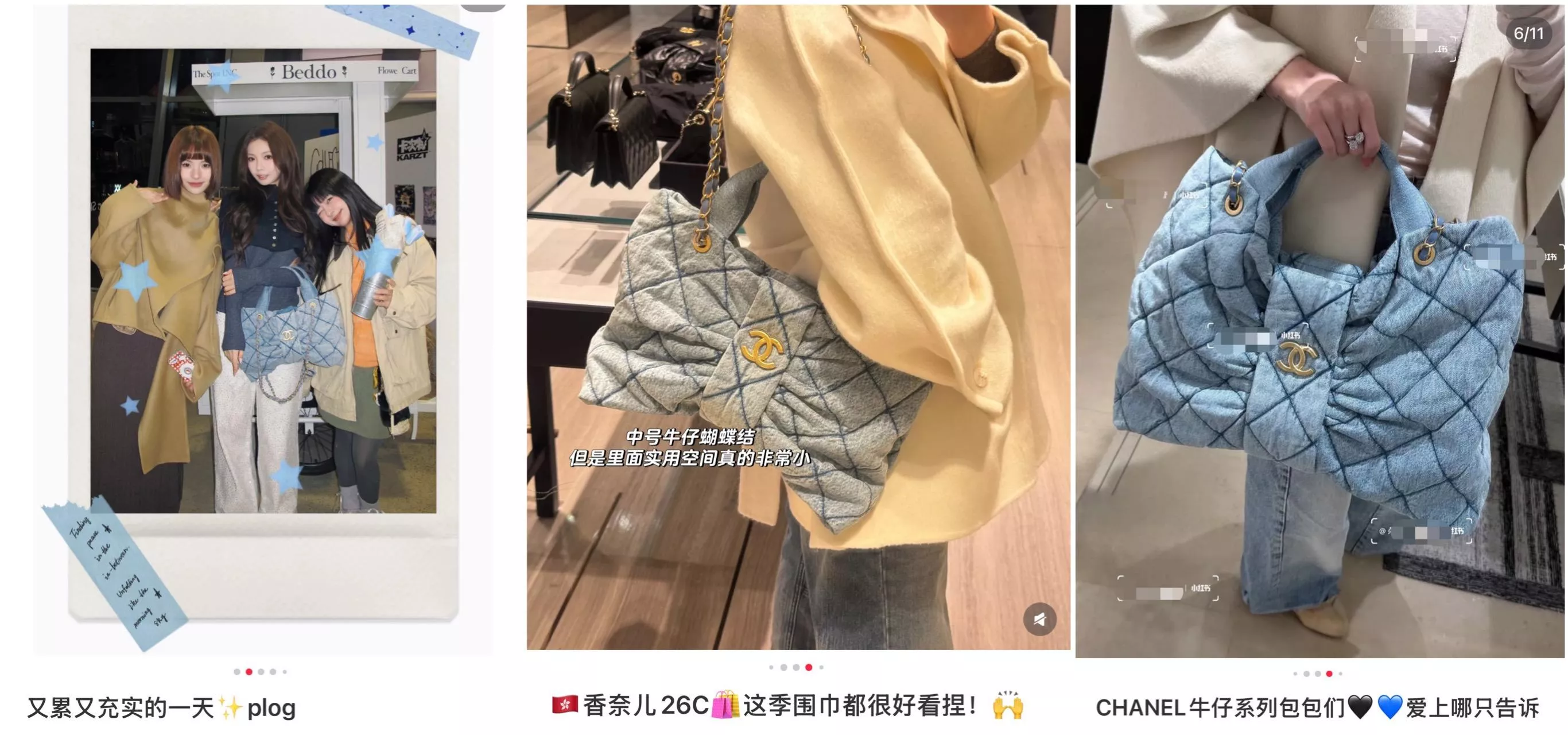 以 立體蝴蝶結 作為包身主視覺,結合經典菱格語彙,