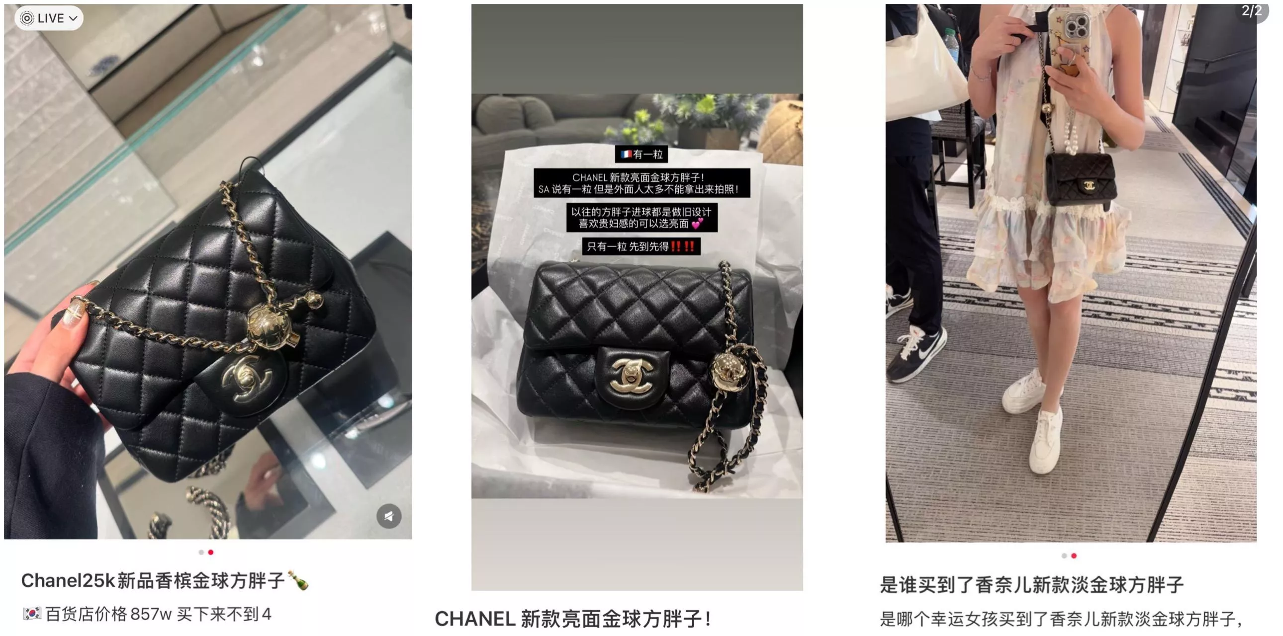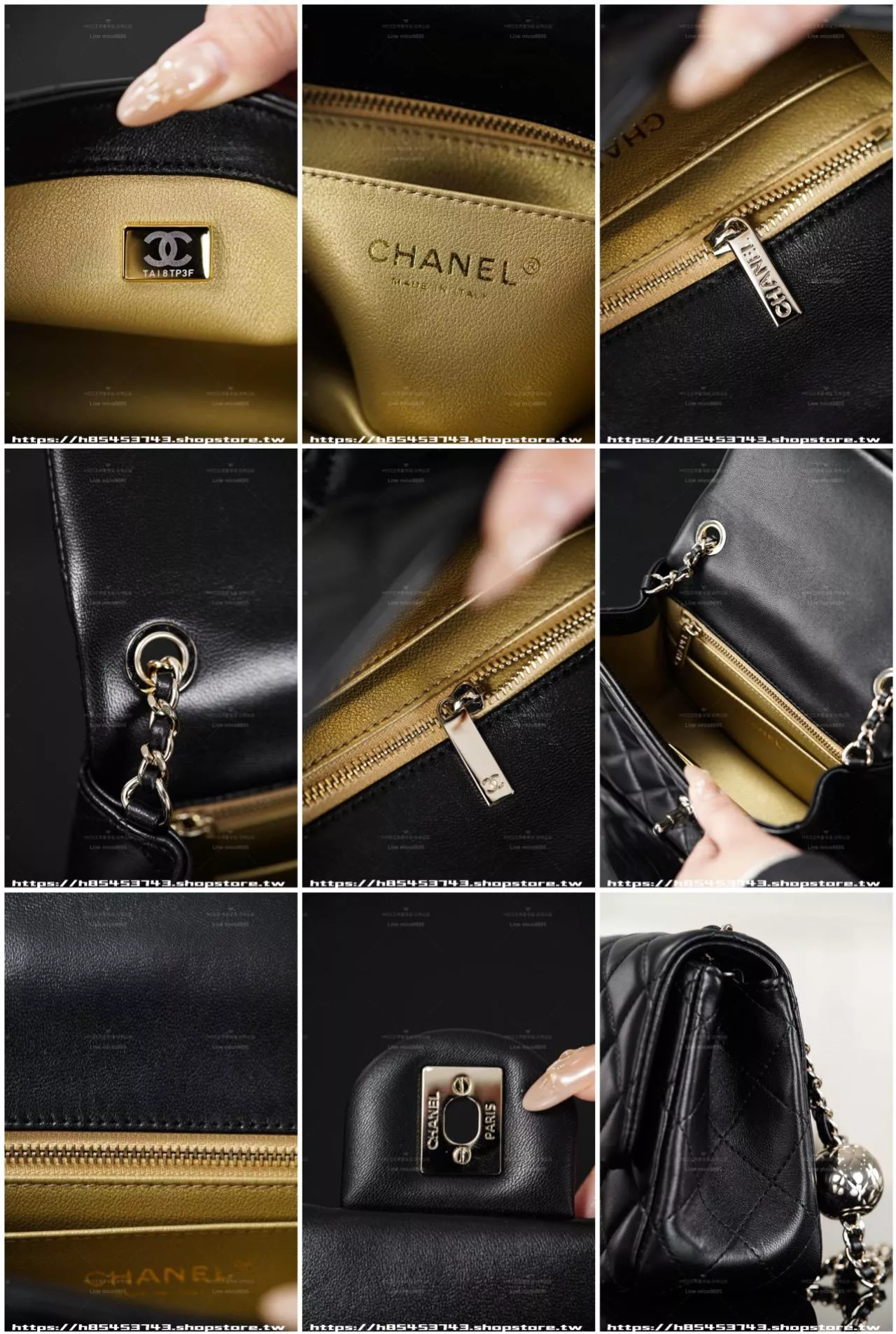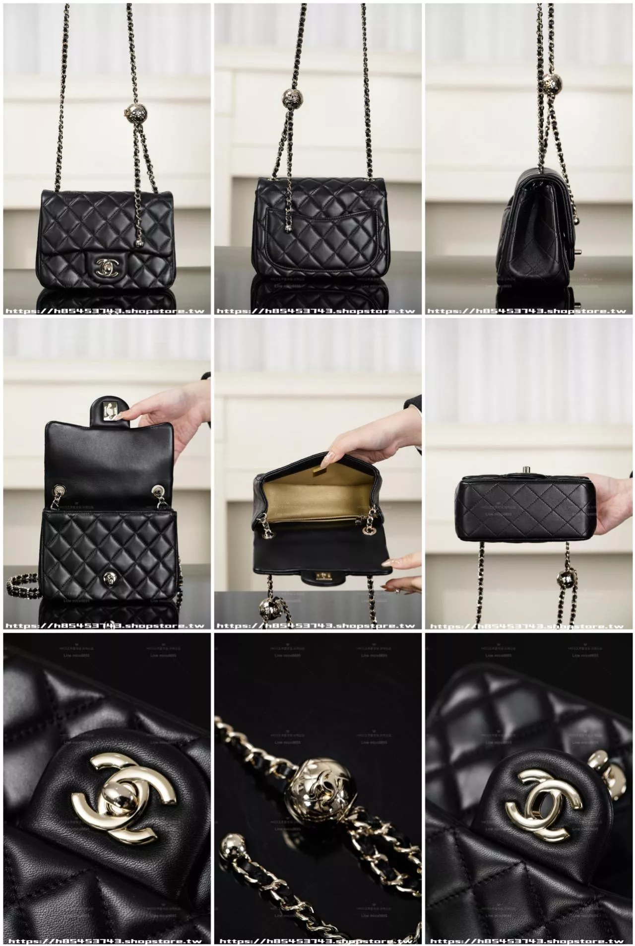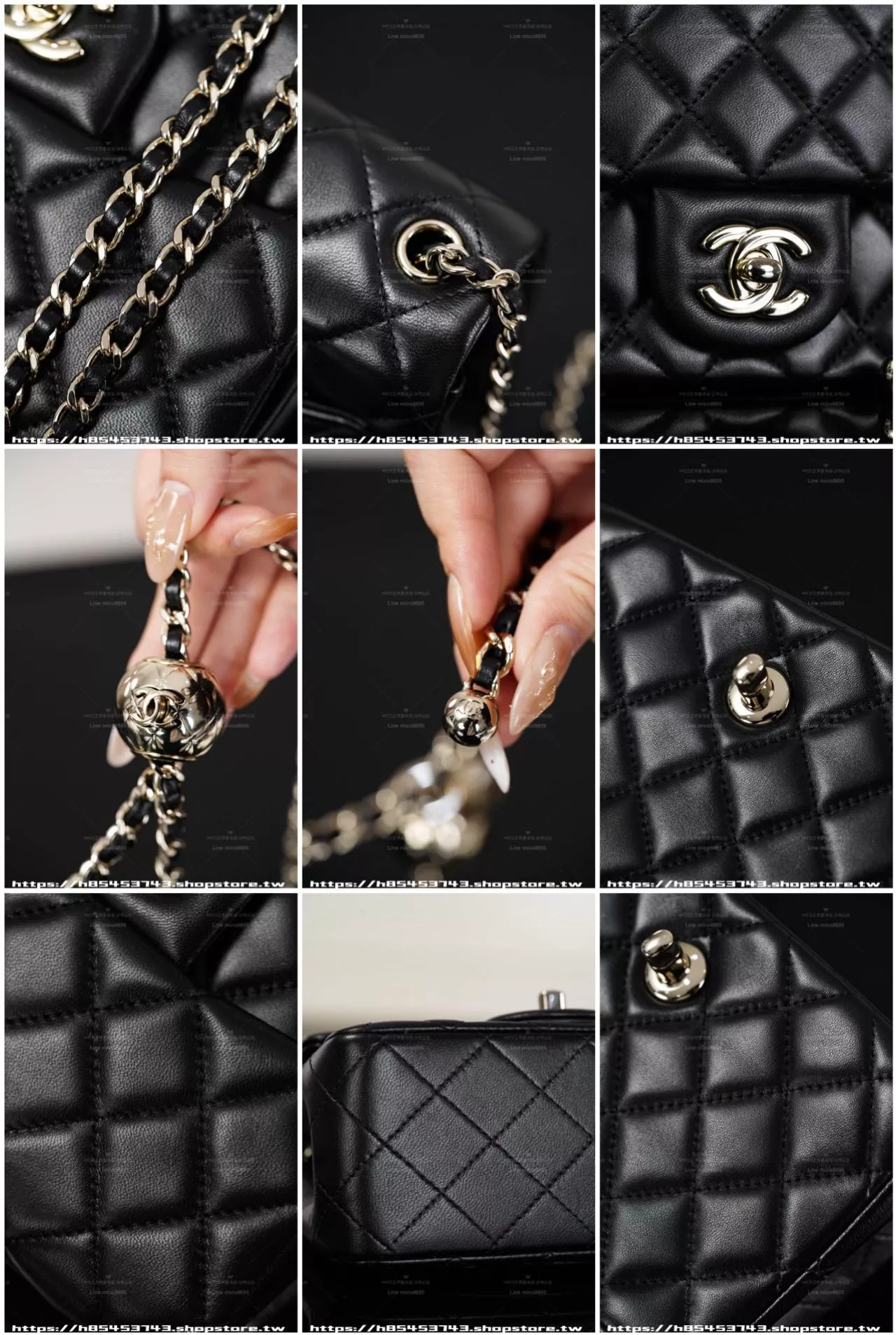 金球與鍊條為淡香檳金色調,與包身黑色形成柔和對比,不張揚卻極具質感。