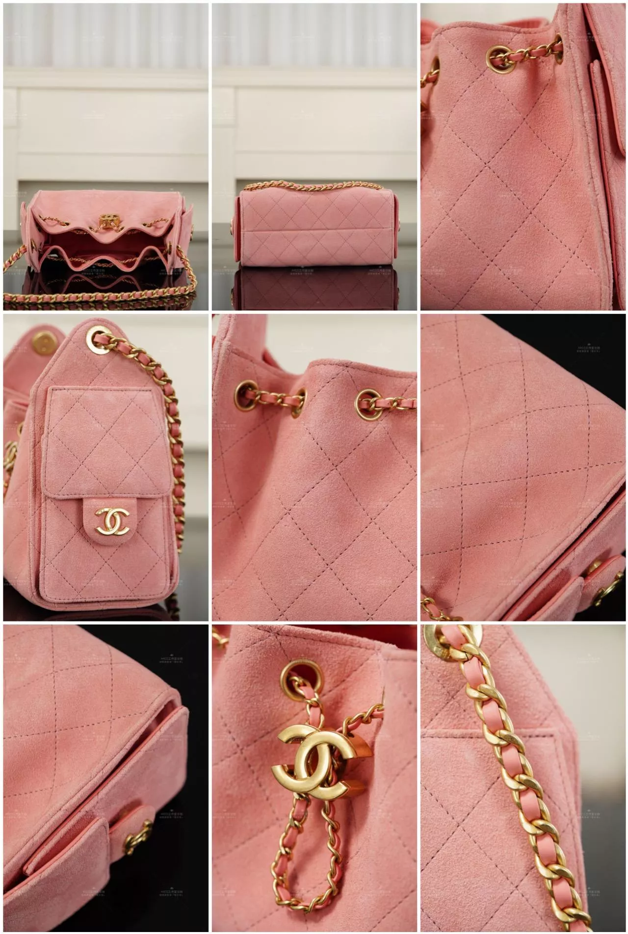 26C系列 麂皮款 粉色 Mini 25Bag 抽繩水桶包|20cm