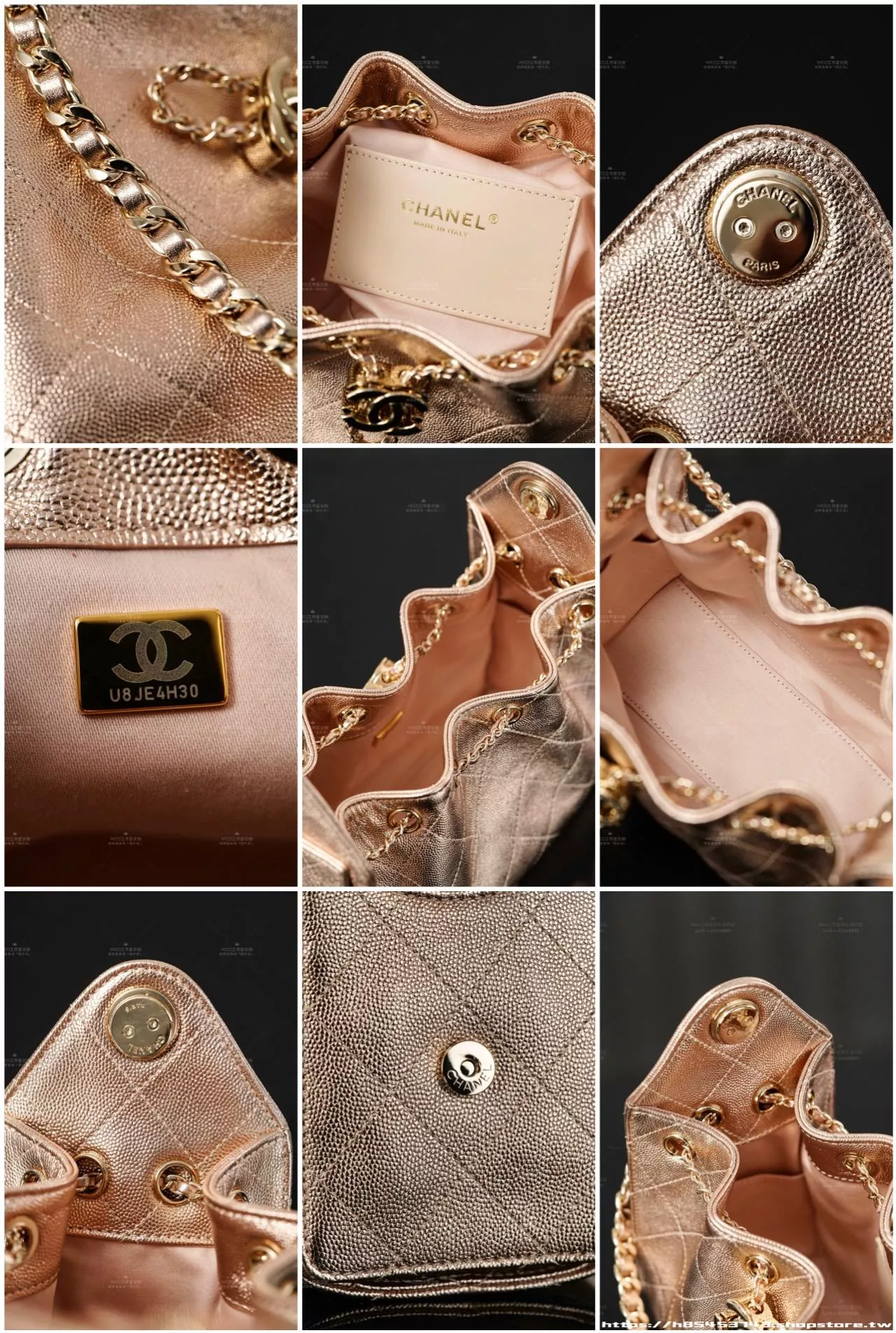 26C系列 玫瑰金 Mini 25Bag|魚子醬牛皮 水桶包 20cm